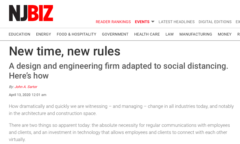 I am truly proud of how quickly we as a company and industry have come together and responded to this new challenge. As we look back at our learnings from Superstorm Sandy, remote access and connectivity was a key. Fortunately, it has helped us right now. I have always envisioned our profession moving to a more virtual environment where our designers are collaborating remotely; we have been moving our company towards this for many years and we are stronger for having embraced technology and pushing our multiple generations of employees to recognize its value.