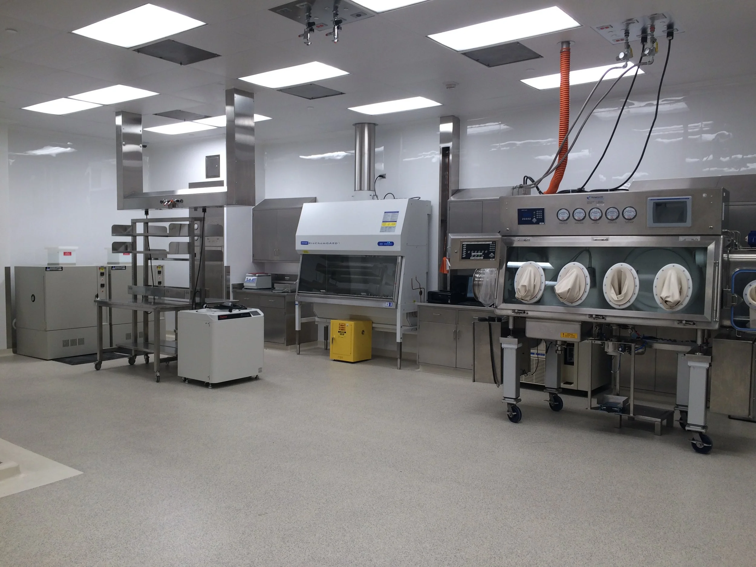 The design strategy for the new HAPI Pilot Plant and Analytical Laboratory has taken into consideration containment requirements for OEB 4/5 compounds with the utilization of isolator technology within a flexible cGMP facility. Personnel gowning procedures with entrance and exit airlocks with strict pressurization controls provided containment and personnel protection. cGMP facility finishes provided the cleanliness criteria for surface and material selections for smooth, durable and clean appearances. Process utility enclosures provided the pathways for clean utilities with aseptic connections including WFI, Clean Compressed Air, Steam, Nitrogen, and Power.